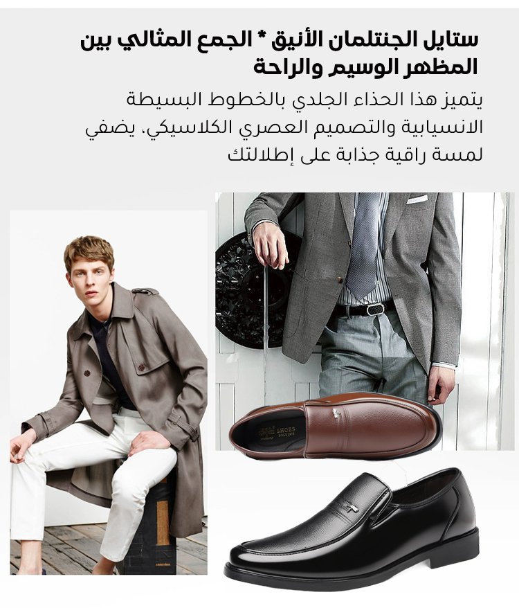 حذاء جلدي ناعم بستايل تجاري كاجوال للرجال (طبقة علوية من جلد البقر الطبيعي)
