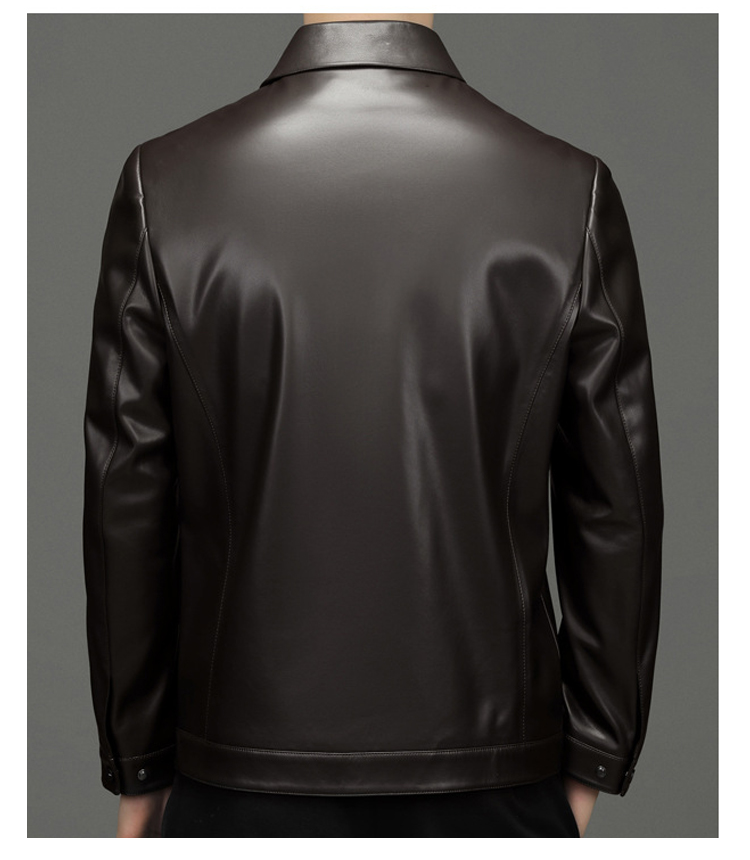 جاكيت جلدي رجالي فاخر بالياقة المطوية (استخدام قطعة كاملة من جلد البقر)