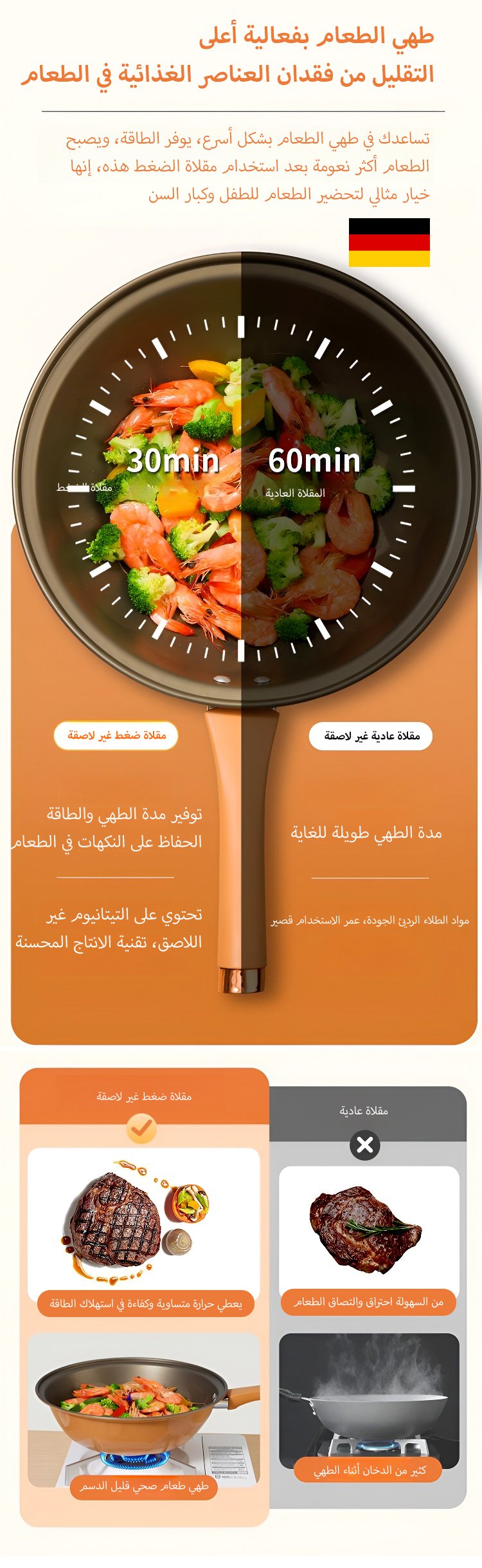 مقلاة غير لاصقة موصى بها من ميشلان،تكنولوجيا سبائك الفضاء،توصيل حراري جيد، دخان الزيت قليل، الطبخ أكثر صحة