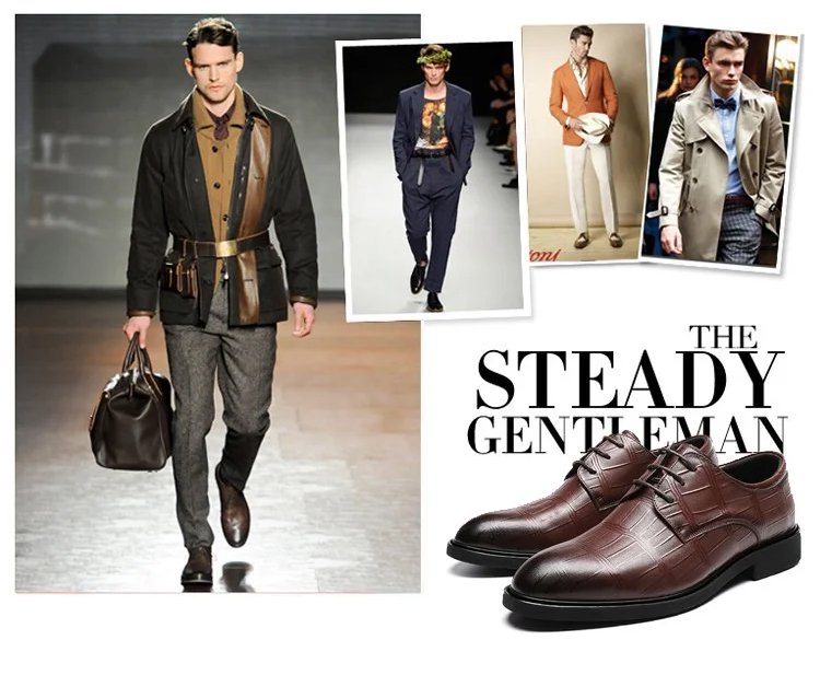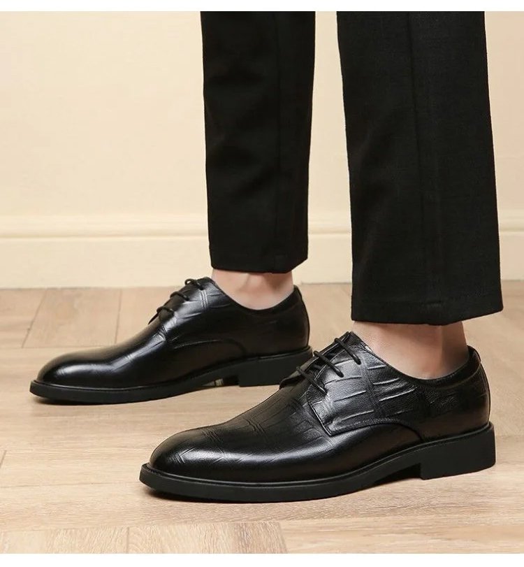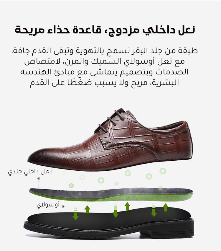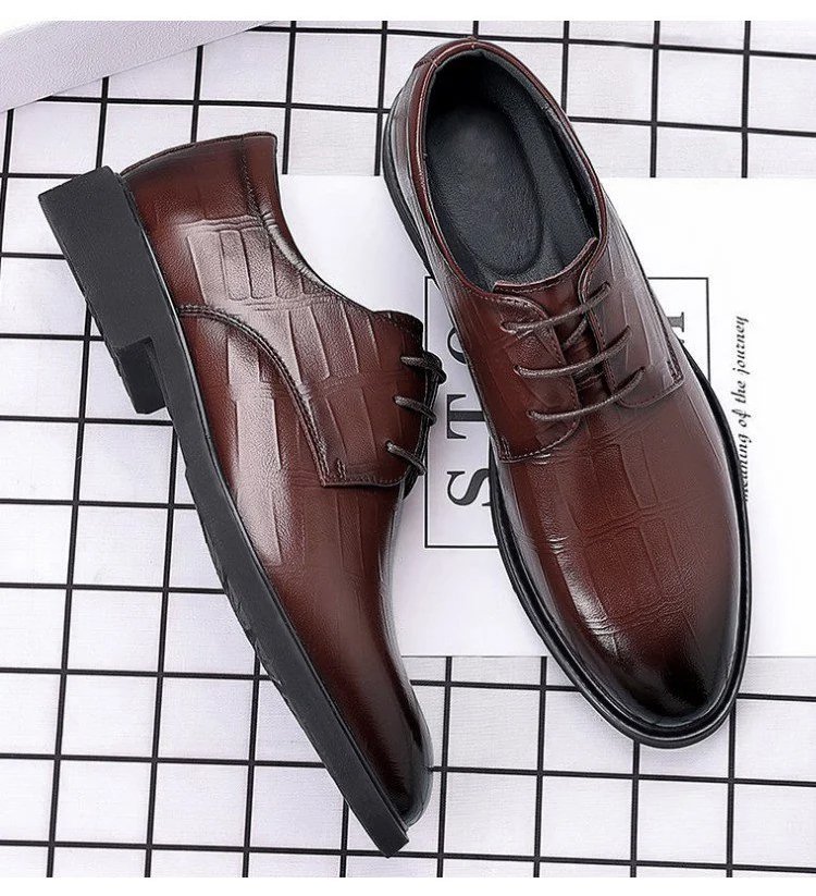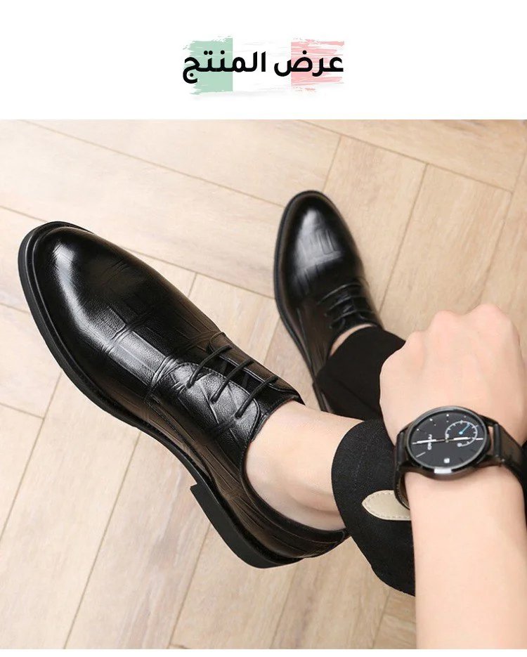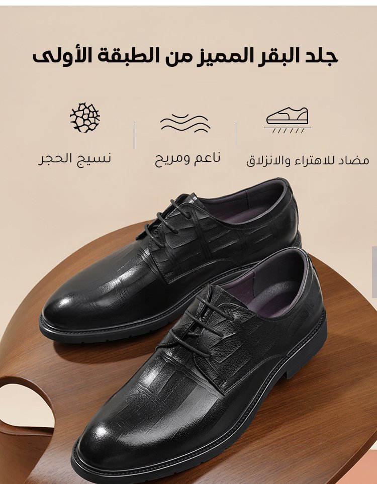حذاء جلدي تجاري كاجوال للرجال مع وظيفة زيادة طول القامة ( زيادة طول القامة بصريا خلال 1 ثانية (